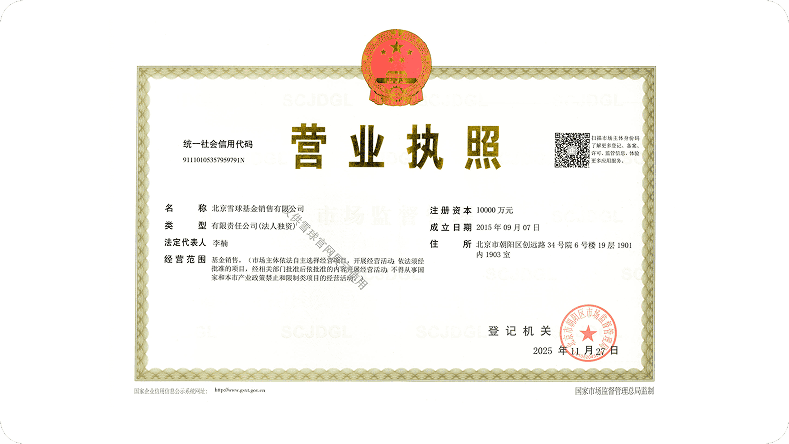 雪球基金于2016年获得证监会核准颁发的基金销售牌照,是合规展业的基金销售机构。非货基金保有量超400亿元、代销公募基金超17000只、合作超140家基金公司、权益基金占非货基金保有规模比例80%。